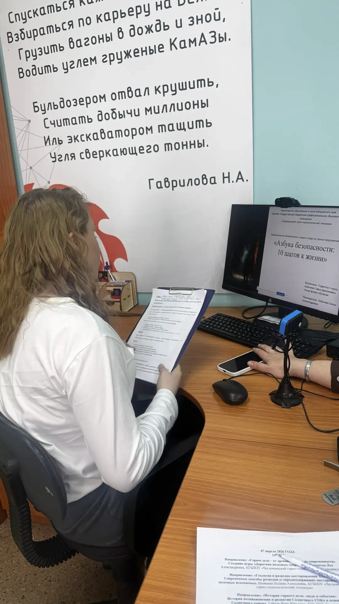 1 место — Бабичева Софья (КГБПОУ ЧГТТ) (направление «Промышленная безопасность и охрана труда на горных предприятиях»): «Азбука безопасности: 10 шагов к жизни».
